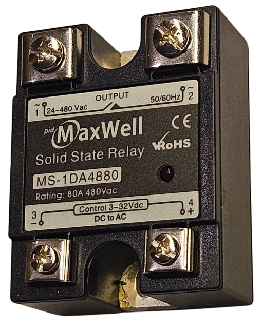 Relay o Rele de Estado Sólido (SSR) MaxWell diseñado para durar y manejar una carga real de 80 Amperios. |Si busca un SSR que no falle por sobrecarga y que ofrezca una vida útil 3 veces mayor a sus imitaciones, este es el producto que necesitas.